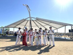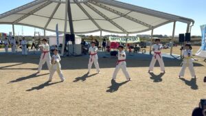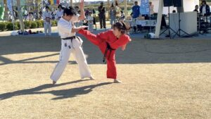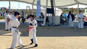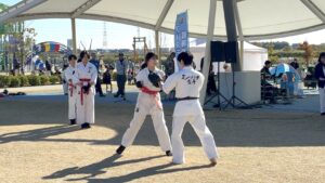 11月15日(土)、碧南市の油ヶ淵水辺公園にてミュージック空手とセーフティー組手を披露してきました。