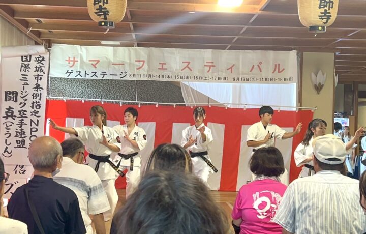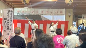 2025.09.14 2025.09.24 9月14日(日)、愛知県岡崎市、一畑山薬師寺にて演武を披露してきました。 Post Share Hatena Pocket RSS feedly Pin it 記事のタイトルとURLをコピーする 9月14日(日)、愛知県岡崎市、一畑山薬師寺にて演武を披露してきました。 お客様の暖かい歓声もあり、演武は大いに盛り上がりました。 関係者の皆様、ありがとうございました。 8月24・25日、浜名湖レークサイドプラザにて空手合宿を行いました。 前の記事 9月20日(土)、「第28回中部公民館芸能まつり」にてミュージック空手を披露してきました。 次の記事